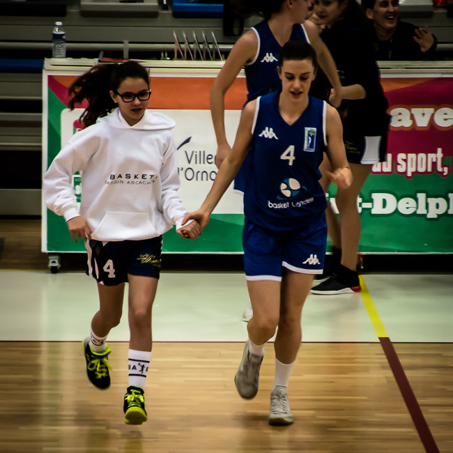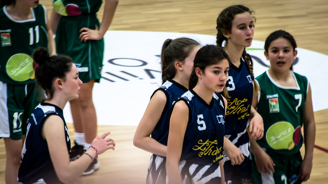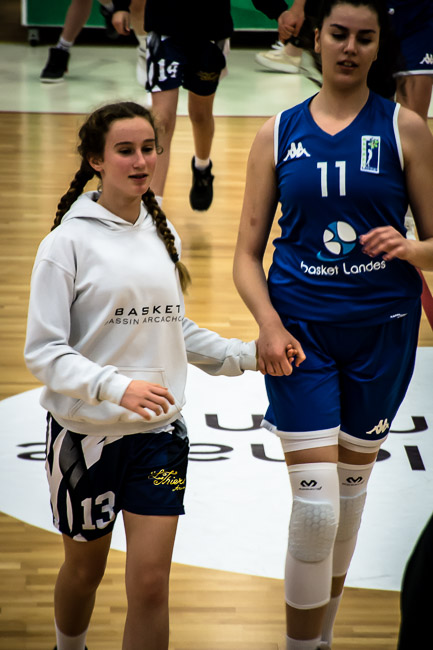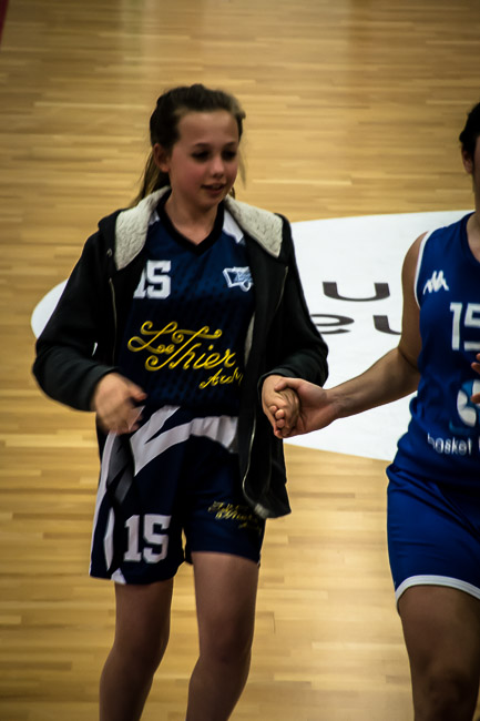 Après avoir accompagné les joueuses locales lors de la présentation des équipes, elles ont rencontré les U13 du club local lors des temps morts et intervalles de jeu...